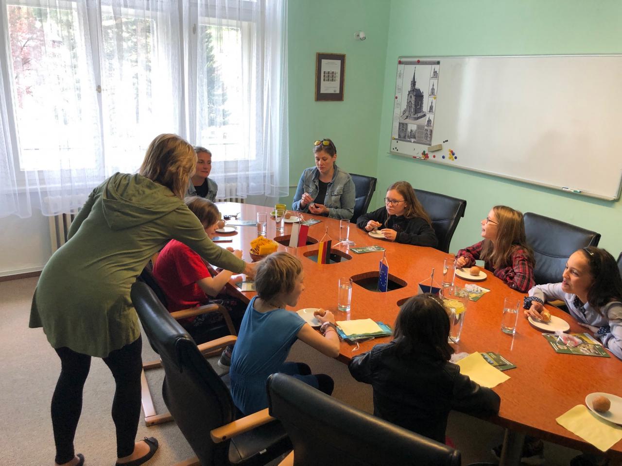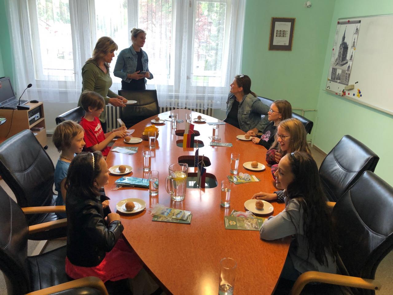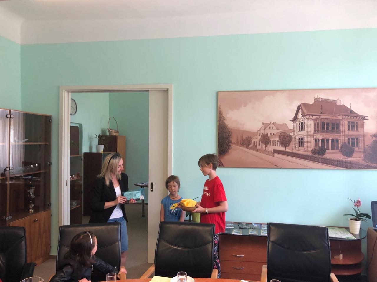 V pátek 13. května ředitelka naší školy Mgr. Andrea Janušková, zástupkyně ředitelky Mgr. Michaela Kotrbancová, starosta obce Jaroslav Zeman a delegace děvčat odevzdali osobně svůj peněžní dar ve výši 3.539,- Kč ředitelce desenské školy Mgr. Martině Hrubé a starostovi města Desná Jaroslavu Kořínkovi. Škola darované prostředky použije na nákup výtvarných potřeb pro dětí z Ukrajiny.