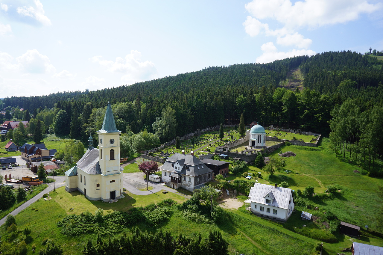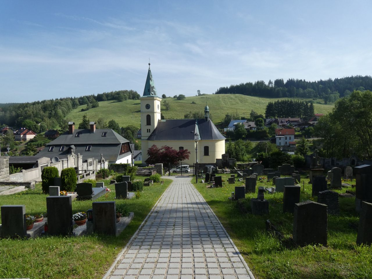 Na hřbitově je mohutné mauzoleum s kopulí a skleněnou mozaikou. Mauzoleum nechal postavit v roce 1935 syn podnikatele Johanna Schowanka, který v sousedním Jiřetíně pod Bukovou založil firmu na výrobu dřevěných perel a hraček.